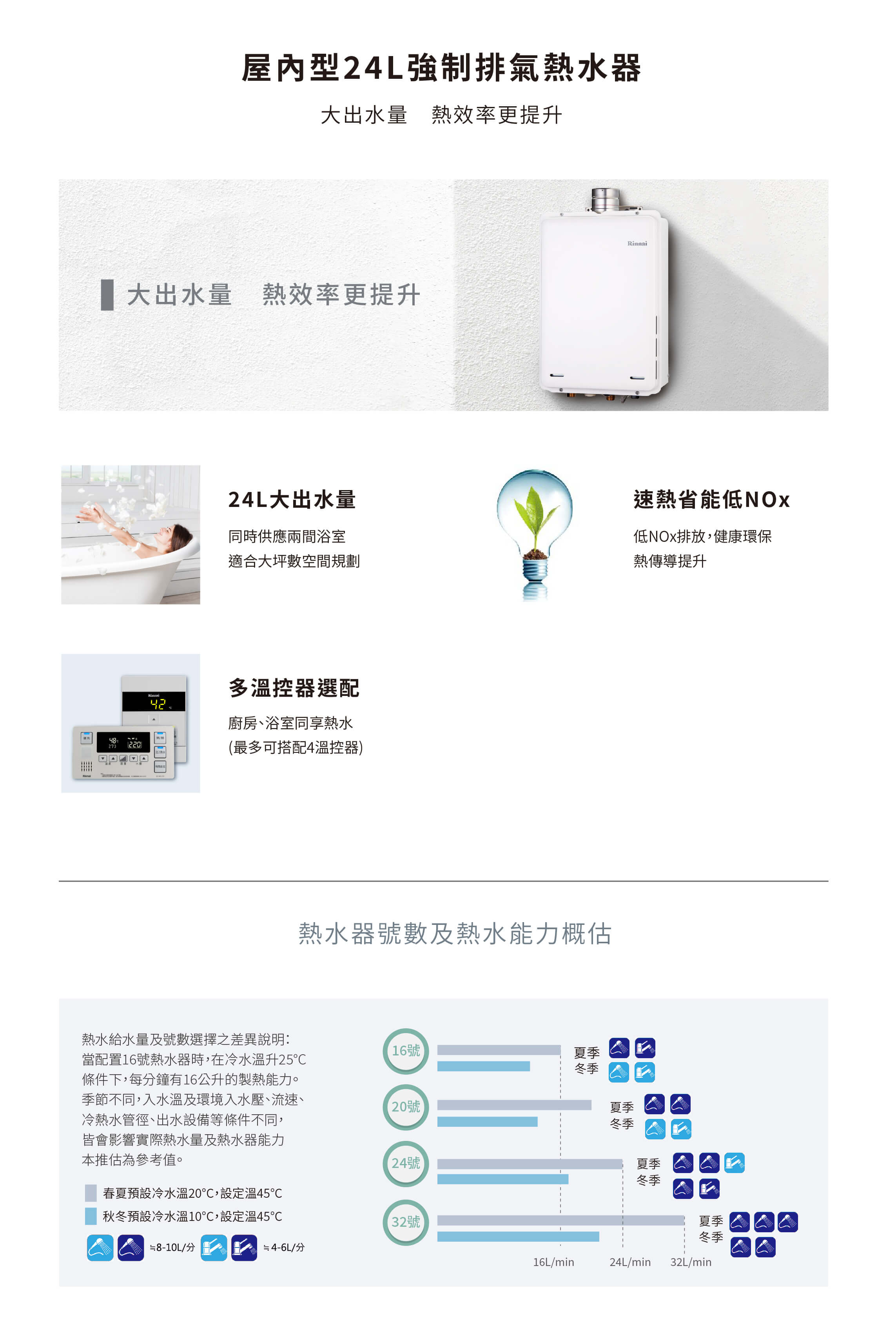 | 林內24公升數位恆溫強制排氣熱水器 |
