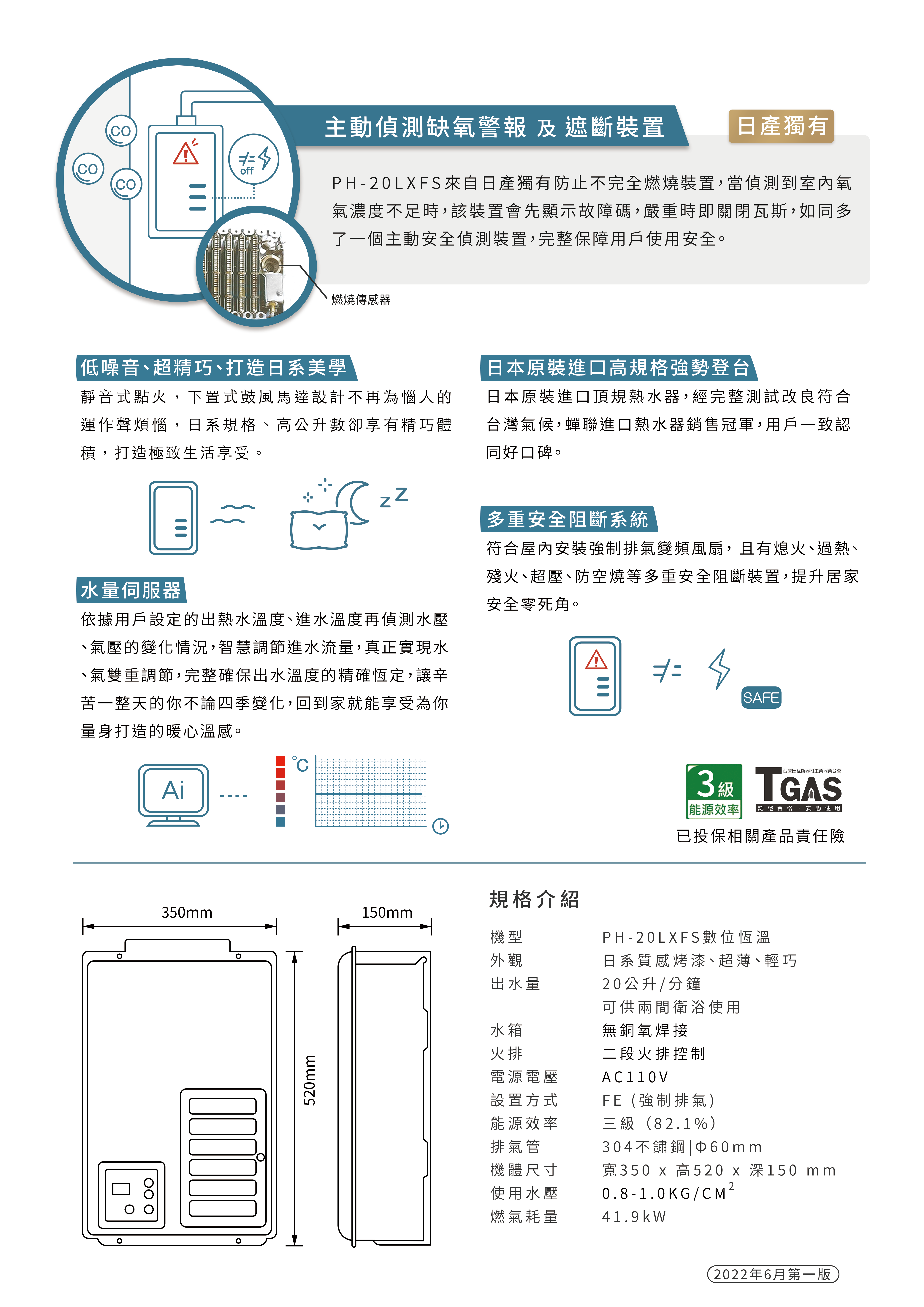 - 日產獨有主動偵測缺氧警報,偵測陽台空間含氧濃度