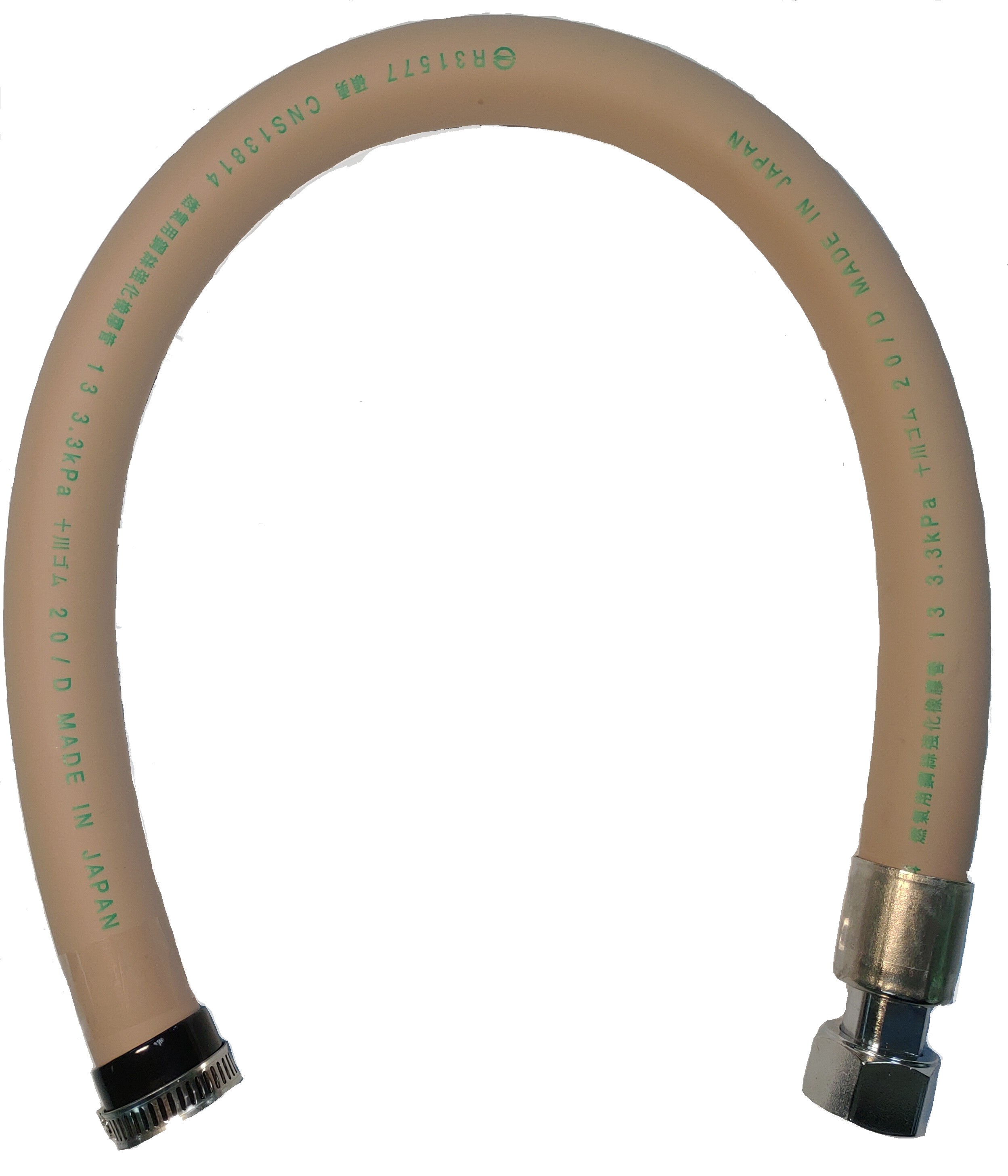 - 2.1 型安全龍頭與瓦斯爐入口處之連接管。